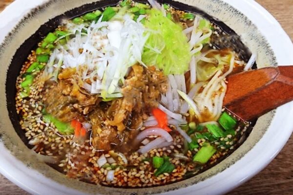 勝浦市白井久保にある「元祖勝浦式担々麺 江ざわ」は、勝浦タンタンメン発祥の店として知られる超有名店です。昭和29年創業で、初代店主が漁師や海女の冷えた体を温めるために考案した「江ざわ式・担々麺」が勝浦タンタンメンのルーツとなりました。鶏や豚、魚介からとったダシと自家製タレをブレンドした醤油ベースのスープに、真っ赤な自家製ラー油が特徴。ほのかに甘い玉ねぎと挽肉との相性が抜群で、辛さの中に深みのある味わいがクセになります。平日でも行列ができる人気店で、週末のランチタイムには2時間待ちもザラ。辛さは5段階で調整可能で、辛いのが苦手な方は控えめでも注文できます。勝浦駅からタクシーで約15分、駐車場20台完備。スープがなくなり次第終了となるため、早めの来店がおすすめです。