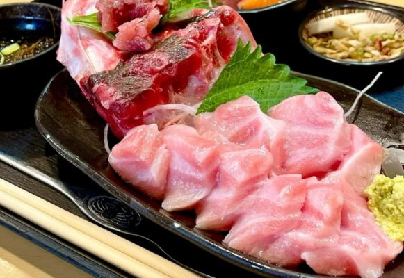 人気メニューの「刺身デラックス定食」や「本マグロ大トロ定食」は、どちらもボリュームたっぷり。日替わりの刺身盛り合わせには、マグロのトロやサーモン、カンパチなどが並び、鮮度の良さが光ります。その日の仕入れによって内容が変わるのも、何度でも通いたくなる魅力のひとつ。お酒と相性のいい一品料理もそろっており、魚好きにとってはたまらない一軒です。