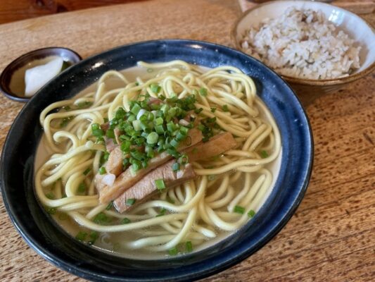 石垣島の住宅街にひっそりと佇む「来夏世」は、八重山そばの人気店として知られています。店名の「来夏世」には、五穀豊穣への願いが込められており、どこか懐かしい赤瓦の民家のような雰囲気が訪れる人々を温かく迎えてくれます。こちらの看板メニューは、なんといっても澄んだスープが特徴の八重山そば。朝食や少し早めのランチとして、地元の方から観光客まで多くの人に親しまれています。丸みのある細麺に、甘辛く煮付けられた細切りの豚肉とカマボコが乗ったスタイルは、八重山地方の伝統そのもの。あっさりとしていながらも、出汁の旨みがしっかりと感じられるスープは、朝の体にじんわりと染み渡ります。サイドメニューの「ジューシー(炊き込みご飯)」と一緒に注文するのがおすすめ。店内に流れる穏やかな時間とともに、石垣島の日常を感じられる朝のひとときを楽しめます。