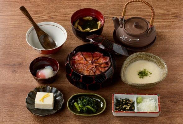 店内は和の落ち着いた雰囲気が漂い、定食スタイルで気軽に和牛料理を楽しめるのが魅力です。中でも人気の「和牛ひつまぶし」は、香ばしく焼いた和牛をそのまま味わうだけでなく、薬味や出汁を加えて三通りの食べ方ができる贅沢なひと品。甘辛いタレと上質な和牛の旨味が絶妙に絡み合います。また、豆腐や小鉢が添えられた一汁三菜の定食も京都らしさを感じられる内容で、バランスよく楽しめます。牛の炙り焼き御膳など、特別感のあるメニューも揃っており、夕方の食事や観光ディナーにもぴったりな一軒です。