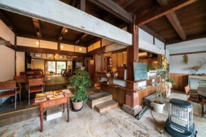 別府駅から徒歩約10分、昭和初期に炭鉱主の別荘として建てられた趣深い建物を利用した茶房です。高い天井とシャンデリアが印象的な店内は、明治や大正ロマンを感じさせる落ち着いた雰囲気に包まれています。大分の郷土料理が楽しめることで知られ、特に名物のだんご汁定食は毎日店内で手延べされるもちもちのだんごが特徴。小麦粉と水と塩だけで作られたシンプルなだんごは、白菜や人参、ごぼうなどの野菜とともに味噌仕立てのスープでいただきます。かぼすを絞ればさっぱりとした味わいに変化し、野菜の食感もしっかりと残る工夫が施されています。朝9時から営業しており、モーニングタイムには大分の家庭的な朝ごはんを味わうことができます。やせうまや手作り寒天などの甘味メニューも充実しており、観光客にも地元の方にも愛され続けている別府の名店です。