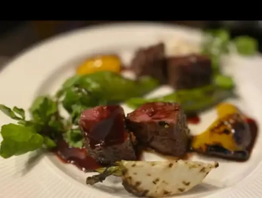 名物の鹿肉や猪肉のステーキは臭みが少なく、備長炭で焼くことで旨味がしっかり引き出されます。山形牛A5ステーキや鹿肉カルパッチョもおすすめで、常時40〜60種そろうワインとの相性も抜群です。シェフのお任せコースは前菜からパスタ、ジビエのメインまで充実しており、飲み放題付きプランも好評。最大35名での貸切パーティーにも対応しています。