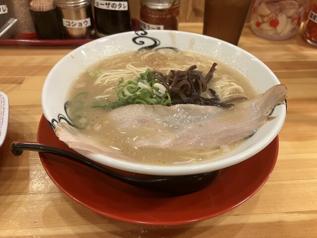 筑後市山ノ井にある「天風堂 筑後本店」は、博多一風堂に教えを乞い、店名も一風堂の社長が名付け親となった実力派のラーメン店です。店舗隣の工房で若鶏のとりがらからじっくり煮出したスープは、しつこすぎず、あっさり過ぎず、ちょうどいい塩梅がクセになると評判。旨みとコクのあるスープは、思わず完飲してしまう常連客も多いほどです。こってり濃厚な豚骨スープと細麺の相性は抜群で、もやしと高菜が食べ放題なのも嬉しいポイント。チャーハンも人気で、パラパラに炒められた焼飯はラーメンとのセットで楽しむのがおすすめです。ログハウスのようなウッディな造りで天井が高く、落ち着いた雰囲気の店内は居心地抜群。筑後で本格的な豚骨ラーメンを味わいたい方におすすめです。