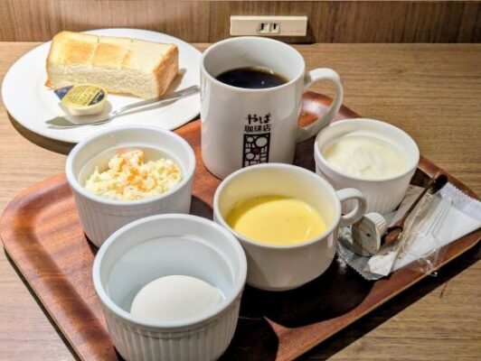 沼津仲見世商店街の入り口近くに位置する「やば珈琲 沼津店」は、名古屋スタイルのモーニングが楽しめるカフェとして人気です。朝7:00からオープンしており、コーヒーを注文するとトーストなどが付いてくるお得なセットが魅力。また、おにぎりメニューも充実しており、朝はしっかり米を食べたいという方にも喜ばれています。店内はWi-Fi完備で、清潔感のある現代的な造り。旅の途中で情報を整理したり、少し仕事をしたりするのにも便利です。沼津駅から徒歩圏内という好立地もポイント。カジュアルに、かつリーズナブルに朝食を済ませたいときにぴったりの、使い勝手の良いお店です。