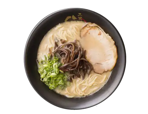 最大の特徴は「豚骨カプチーノ」と称される泡立つスープ。有名店「博多一幸舎」で修業を積んだ技術と、全国の名店を食べ歩いて編み出した「一双黄金比」により、骨の各部位の比率を調整しながら三つの寸胴で徹底的に煮込んでいます。濃厚でありながら臭みがなく、甘くマイルドな味わいとすっきりとした後味が魅力。もっちりとした細打ち平麺との相性も抜群です。卓上にはおろし生姜や辛子高菜も用意されており、味の変化も楽しめます。