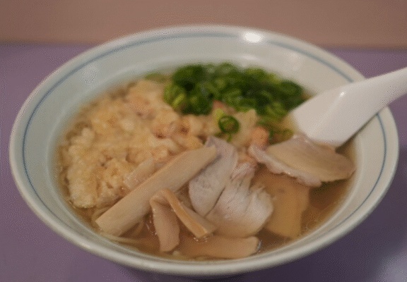 人気メニューは、地エビのかき揚げをのせた「天ぷら中華」。サクサクの揚げたてかき揚げと澄んだスープの相性が抜群で、尾道ラーメン好きの間でも評判の逸品です。定番の「中華そば」も背脂系とは異なるクリアで上品なスープが特徴で、いりこや鶏ガラの旨みがやさしく広がります。うどんメニューもあり、幅広い世代に親しまれています。観光の合間にふらりと立ち寄って、地元民に愛され続ける味わいをぜひ一度お試しください。