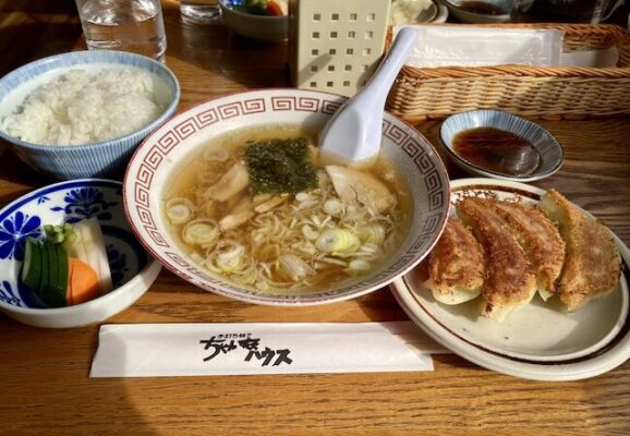 仙石原、ラリック美術館の目の前に位置する中華料理店。40年以上地元で愛され続けているお店で、餃子の種類が豊富なのが特徴です。表面はパリパリ、皮はモチモチで、口の中に入れるとジューシーな肉汁が溢れます。特におすすめは、ギンナンとニンニクが入った「スタミナ餃子」と、シソの香りが際立つ「シソ餃子」。ラーメンセットは餃子4個、ご飯、お新香にホットまたはアイスコーヒー付きで1,375円。餃子定食は餃子6個にご飯、味噌汁、お新香付き。観葉植物と民芸品が飾られた店内は新しいながらもどこか懐かしい雰囲気。テイクアウトにも対応しているので、宿で晩酌のお供にするのもおすすめです。