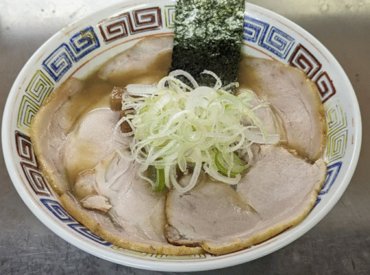 スープは豚骨をベースに鶏ガラと魚介の旨味を加えた奥深い醤油味。たっぷりとのった刻み玉ねぎがスープのコクを引き立て、スッキリとした後味に仕上げています。自家製の中細ストレート麺は喉越しが良く、スープとの一体感が抜群です。看板メニューの「チャーシューメン」は、しっとりと柔らかいチャーシューがたっぷりで、ボリュームも申し分なし。トッピングのメンマやネギも丁寧に盛り付けられており、全体のバランスが絶妙です。ラーメン本来の魅力をシンプルに追求した一杯が、多くの人を惹きつけています。