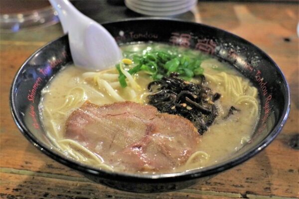 琉球新麺 通堂 小禄本店は、那覇市金城にある沖縄ラーメン界を代表する人気店です。連日多くの人でにぎわい、観光客はもちろん地元の常連にも長く愛され続けています。店内は和風で落ち着いた雰囲気があり、カウンター席を中心に一人でも入りやすい空間。看板となる豚骨ラーメン「Tonkotsu」は、しっかりとしたコクを感じつつも後味が重くなりにくく、最後まで食べやすい一杯として知られています。塩味ベースのラーメンも用意されており、好みに合わせて選べる点も魅力です。ラーメンと合わせて注文されることが多い煎餃も人気で、食事としての満足感を高めてくれます。営業時間が長く、ランチから夜遅い時間帯まで利用しやすいため、観光の合間や仕事帰りにも立ち寄りやすい一軒。沖縄でラーメンを語るうえで外せない、安定感のある名店です。