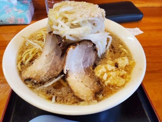 村山市楯岡新町にある「ラーメン405(よんまるご)」は、二郎系ラーメンが好きな方に絶対おすすめの一軒。店名の「405」は国道13号線沿いという立地から名付けられました。看板メニューの「山らーめん」は、高く盛られたもやしの上にアブラがオンされた迫力満点のビジュアルが特徴です。野菜は油通しされており熱々で、濃厚なスープとよく絡む自家製の中太縮れ麺が食べ応え抜群。ニンニクの量も調整できるので、お好みでカスタマイズできます。価格帯は750円〜1,000円程度とリーズナブルで、ボリュームも十分。村山市内で本格的なガッツリ系ラーメンを食べたいなら、ここで決まりです。