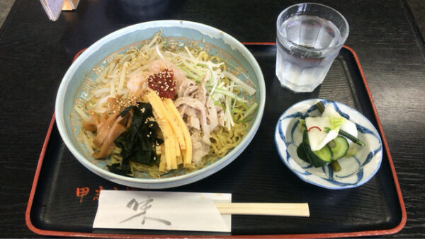 「山形麺屋 殿(しんがり)」は、古民家を改装した趣のある店舗が特徴的なお店です。最大の魅力は実用新案を取得した選べるメニューシステム。「温・冷」×「そば・うどん・中華麺」×「鶏肉・豚肉・牛肉・山菜」の組み合わせで、なんと24通りのメニューが楽しめます。一番人気は「辛ガリ中華」で、ラー油の辛味とガリの酸味が効いた独特の味わいが癖になります。冷やし鶏中華も人気で、あっさりスープとモチモチの中太麺が相性抜群。価格は700円〜930円と良心的で、昼時は地元の方で賑わいます。タッチパネルの券売機も導入されており、古さと新しさが同居するユニークな空間で食事が楽しめます。