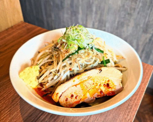 人気メニューは「濃厚つけ麺」で、コシのある太麺を魚介の旨みたっぷりのスープにたっぷりと絡めて味わいます。つけ汁は途中で味変できるスパイスや酸味のある薬味が添えられており、最後まで飽きずに楽しめるのが魅力です。つけ麺以外にも、限定のまぜそばや味玉トッピングなどバリエーション豊かなメニューがあり、仙台でつけ麺・ラーメン好きに支持される一軒です。