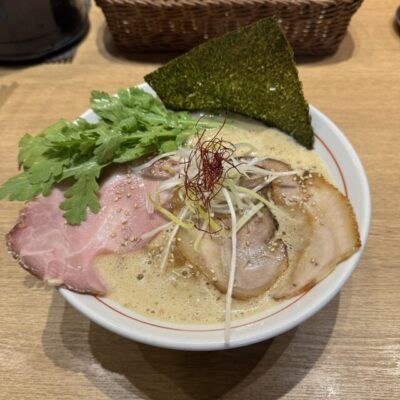 Ramen兼田は、なんばの中心にあるエディオンなんば本店内に店を構える、落ち着いた雰囲気でラーメンを楽しめる一軒です。見た目は鶏白湯のように白くクリーミーなスープですが、ひと口味わうと味噌のコクと香りが広がるのが大きな特徴。まろやかさの中にしっかりとした旨みがあり、重たすぎず最後まで食べ進めやすいバランスに仕上がっています。麺はスープとの絡みが良く、噛むほどに小麦の風味が感じられるタイプ。商業施設内にありながら、食事としての満足感が高く、買い物の合間やランチ・ディナーにも使いやすいのが魅力です。なんばで、少し落ち着いた空間で個性のある一杯を味わいたいときに選びたくなるラーメン店です。