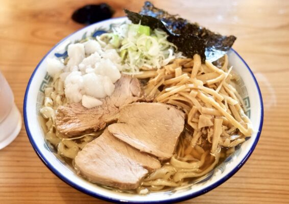 看板メニューの「冷やしラーメン」は、スープのキレとコクが絶妙で、さっぱりしながらも食べごたえがあります。チャーシューやメンマ、季節の野菜がトッピングされ、見た目にも涼しげ。冬場でも注文が絶えない人気ぶりです。温かい中華そばも提供されており、好みに合わせて選べるのも魅力のひとつです。