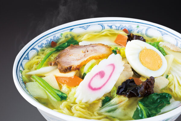 山形市中心部に位置する「山形五十番飯店」は、昭和32年創業の老舗中華料理店。豊富なメニューが揃う中でも、ラーメンは世代を超えて愛される看板メニューです。昔ながらのあっさりスープに、丁寧に作られた具材がのった一杯は、まさに山形のソウルフードといえる存在です。山形駅からも徒歩圏内の好立地で、専用駐車場も完備しているため、車でも訪れやすい点が魅力です。