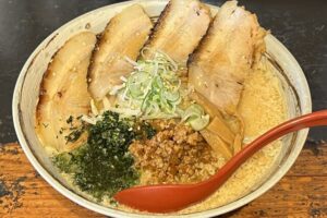 津軽地方で煮干しラーメンを語る上で外せない一軒、麺家辰。地域に根ざしたラーメン店として、昔ながらの津軽ラーメンの味わいを守り続けています。煮干しの旨みをしっかりと感じられるスープは、あっさりとしながらも深いコクがあり、飽きのこない美味しさ。自家製麺との相性も抜群で、地元の方に長年愛されている理由がよくわかる一杯です。
