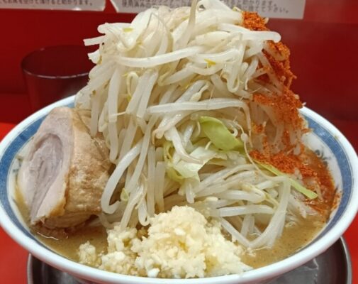 吉祥寺駅北口から徒歩3分ほど、ヨドバシカメラ裏のベルロード沿いにある 「ハナイロモ麺 吉祥寺本店」 は、ボリュームたっぷりの二郎系ラーメンが人気の一軒です。カウンター中心のコンパクトな店内は7席ほどで、ひとりでも入りやすい雰囲気。二郎系ならではのワイルドな盛りと豚骨醤油ベースのスープが特徴で、野菜や背脂、ニンニクのコールで自分好みに味を調整できるのも嬉しいポイントです。