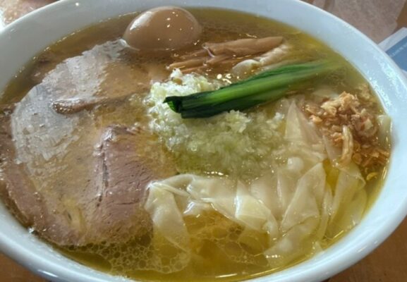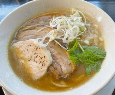 看板メニューは「塩らーめん」。透き通るようなスープは鶏の旨みがじんわり広がり、シンプルながら奥深い味わい。細めのストレート麺との相性も良く、最後の一口まで飽きがきません。香ばしい炙りチャーシューや、とろりとした味玉のトッピングもおすすめ。醤油らーめんも根強い人気があり、素材を活かした丁寧な一杯が楽しめます。