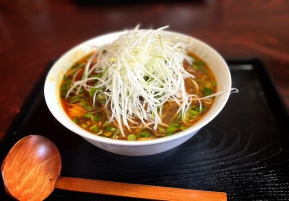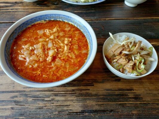 勝浦市小羽戸にある「あざみ」は、辛さを3段階(なみ辛・激辛・地獄)から選べるユニークなお店です。こちらの特徴は、勝浦タンタンメンでは珍しい味噌ベースのメニューも提供していること。醤油ベースの勝浦タンタンメンとはまた違った味わいが楽しめます。月曜・水曜・木曜・金曜限定のランチセットでは、タンタン麺にミニねぎチャーシュー丼がセットになってお得に楽しめます。たっぷりの玉ねぎのおかげで、激辛を選んでも意外とマイルドに感じられるのが「あざみ」の魅力。初めて勝浦タンタンメンに挑戦する方にもおすすめの一店です。