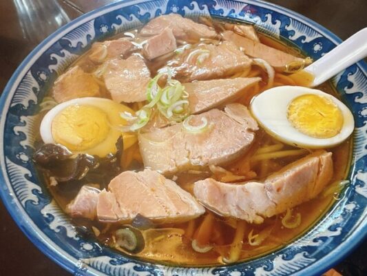 JR外房線鵜原駅近くに位置する「えびね」は、外房黒潮ライン沿いにある人気店です。こちらの勝浦タンタンメンは、辛さの中に旨味がしっかり感じられるバランスの良いスープが特徴。チャーシュータンタンメンが人気で、柔らかくて食べ応えのあるチャーシューがたっぷりと乗っています。ザク切りの玉ねぎがゴロゴロ入っており、甘みと辛さの調和が絶妙です。穴あきレンゲが付いてくるので、具材だけをすくって楽しむこともできます。店内は清掃が行き届いており、店員さんの丁寧な接客も心地よいと評判。地元客や観光客で賑わう活気ある雰囲気も魅力の一つです。