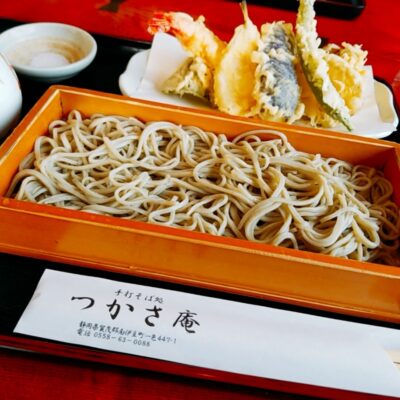 南伊豆町一色の静かな田園風景の中にある、地元客で賑わう人気の手打ちそば処です。国産そばを毎日自家製粉し、香り高いそばが味わえると評判のお店。特におすすめの「生粉打ち」は、そば粉10割の手打ちそばで、ツルッとしたのどごしと香り豊かな風味が特徴です。天せいろは大きな海老天に加え、茄子、オクラ、南瓜、ピーマン、舞茸など数種類の野菜天ぷらがたっぷり。かつ丼セットや天丼セットも人気で、地元の常連客が必ず注文するほどの評判です。そばとうどん共に手打ちで、丼ものメニューも充実しています。下賀茂温泉から車で約10分、田舎道の中にひょっこり現れる隠れ家的なそば処で、南伊豆の豊かな自然の中で美味しいそばを堪能できます。