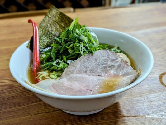 藤並駅から徒歩約5分の場所にある「源屋」は、昔ながらのあっさり醤油ラーメンが自慢の地元密着店です。湯浅丸大豆醤油を使用した看板メニュー「源屋ラーメン」は、透き通ったスープにしっかりとした醤油の風味が効いた、どこか懐かしい味わい。柔らかな肩ロースチャーシューは大きく食べ応えがあり、味玉やネギ、海苔がトッピングされています。夜遅くまで営業しているため、仕事帰りに立ち寄る地元客も多く、アットホームな雰囲気が魅力です。