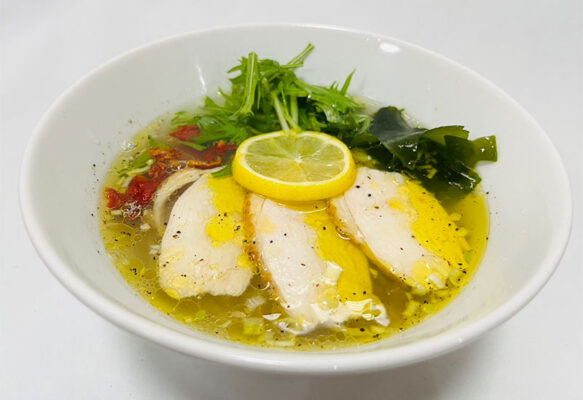 天草市古川町にある「㐂いち(キイチ)」は、天草大王を使った鶏塩ラーメンの専門店です。地産地消にこだわり、天草大王のスープに天草産の塩を使用した塩ラーメンが看板メニュー。透き通った黄金色のスープは、天草大王の旨味が凝縮されたあっさりながらも深い味わいで、老若男女に愛されています。清湯(すっきりタイプ)と白湯(濃厚タイプ)の2種類から選べ、その日の気分で楽しめるのも魅力です。レモンとオリーブオイルをアクセントにした「レモン塩ラーメン」は女性に特に人気で、さっぱりとした味わいが特徴。麺は熊本で人気ナンバーワンの富喜製麺の「のどごし生麺」を使用し、独特の喉越しが楽しめます。昼限定の「天草たんたん麵」は1日5杯限定のレアメニューで、ふわふわの卵と特製スープが相まった逸品です。