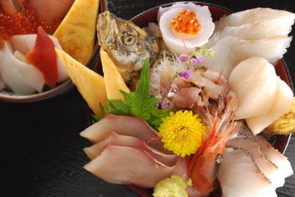 小田原漁港(早川漁港)の市場内、階段を上がった2階にある「魚市場食堂」は、まさに「港の台所」と呼ぶにふさわしい活気あふれる食堂です。市場で働く人々も利用する本物の雰囲気が漂う中、その日に水揚げされたばかりの鮮魚をリーズナブルに味わうことができます。一番の人気メニューは、旬のネタがこれでもかと盛り付けられた「海鮮丼」。一口ごとに海の幸の力強い旨みが広がり、早川を訪れた実感を噛み締めることができます。店内は飾らない素朴な造りで、どこか懐かしい市場の賑わいが心地よい空間です。朝早くから営業しているため、早めのランチや遅めの朝食として利用する人も多いのが特徴。セルフサービス形式ながら、その鮮度とボリュームは圧倒的で、観光客の間でも「早川ならここ!」と名高いおすすめスポットです。早川漁港の熱気を肌で感じながら、最高に美味しい魚を堪能したいなら、迷わずここを目指してください。