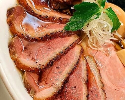 看板メニューは「紀州鴨そば」と「金色貝そば」の二枚看板。紀州鴨そばは、和歌山県産の紀州鴨を贅沢に使用した上品な一杯で、しっとりとした鴨ロースのレアチャーシューが絶品です。金色貝そばは貝の旨みがぎゅっと凝縮された黄金色のスープが特徴で、中細ストレート麺との相性も抜群。特製にすると味玉やチャーシューが追加され、さらに満足度がアップします。サイドメニューの「あぶりチャーシュー丼」や「鴨とり飯」も人気で、大阪でラーメンを食べるなら外せない名店です。