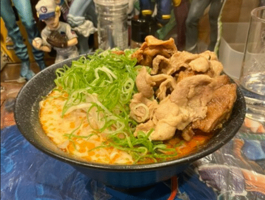 看板メニューの「みそ豚骨ラーメン」は、濃厚ながらもコクのあるスープが特徴で、パクチーやもやしなどのトッピングがアクセントになっています。ファンの間で人気の「ジョジョラーメン」も必食の一杯です。ラーメンの味はもちろん、エンターテイメント性あふれる空間演出も魅力で、大阪観光の思い出づくりにもぴったり。ジョジョファンはもちろん、個性的なラーメン店を探している方にぜひ訪れていただきたいお店です。