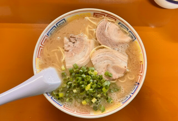 看板の豚骨ラーメンは、口当たりはやさしいのにコクが深く、後味はすっきり。細麺がスープをしっかり持ち上げ、するっと完食してしまいます。食後の満足感が軽やかなのも魅力です。途中で薬味を足して味の変化を楽しむのもいいです。しっかり食べたい日はチャーシューメンや大盛りもおすすめ。餃子や焼きめしを一緒に頼んで“王道セット”にすると満足度がぐっと上がります。