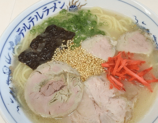 豚骨の旨みをやさしくまとめた佐賀ラーメンで、胡椒とゴマの香りがふわっと立ちます。あっさり寄りでもコクがあり、するっと飲めるのが魅力です。替え玉はないので、一杯でスープと麺のバランスをじっくり味わえます。麺は普通・硬麺・やわ麺から選べるのもうれしいポイント。まずは王道の「ラーメン」か、店名を冠した「テルテルらーめん」がおすすめです。卵や海苔、チャーシュー増しの「特製ラーメン」も人気。おにぎりや餃子、唐揚げを一緒に頼むと満足感がぐっと上がります。