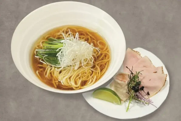 看板メニューは3日間かけて仕込むコンソメベースの「しょうゆ」で、牛・鶏・豚の旨みが凝縮された琥珀色のスープは、飲み干せるほどの上品な味わいが特徴です。真空低温調理されたローストポークとチキンは、スープにしゃぶしゃぶして楽しむスタイル。季節限定メニューも人気で、旬の食材を活かした創作ラーメンが登場します。カフェのようなおしゃれな店内は、女性一人でも気軽に入れる雰囲気で、柏エリアで他では味わえない洋風ラーメンを堪能できます。