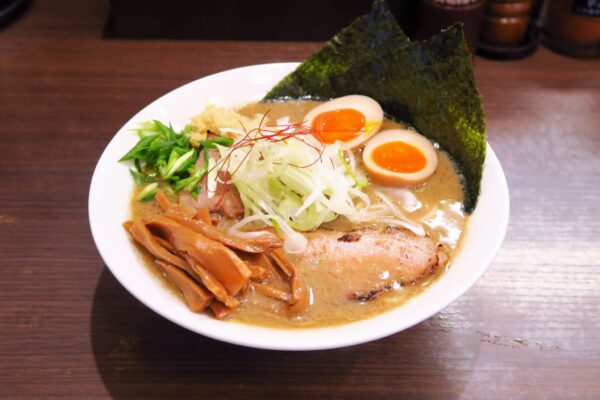 らーめんONEは、宮城県仙台市青葉区に店を構える、個性派ラーメン店です。スタイリッシュで清潔感のある外観と店内は、いわゆる昔ながらのラーメン店とは一線を画し、女性一人でも入りやすい雰囲気。ラーメン好きはもちろん、初めて訪れる人にも好印象を与える空間づくりが特徴です。看板メニューは、素材の旨みを活かした濃厚系ラーメン。鶏や豚のコクを感じるスープは、重すぎずバランスが良く、最後まで飽きずに食べられる仕上がりです。麺はスープにしっかり絡む中太麺で、噛みごたえと喉ごしの良さを兼ね備えています。トッピングのチャーシューは柔らかく、丁寧な仕込みが感じられる一品。味玉やメンマなどの具材も、全体の完成度を高めています。仙台で、洗練された空間とこだわりのラーメンを楽しみたい方におすすめの一軒です。