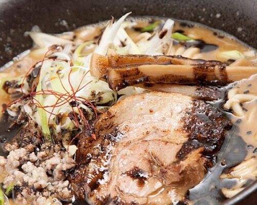 看板は「黒にんにく味噌らぁめん」で、数種の味噌に生姜の香りを重ねた大人向けの一杯。魚介味噌や海老味噌、あっさり醤油、味噌つけめんも人気で、つけ麺は麺量も選べてがっつり派にもおすすめです。味玉やチャーシューを足すと満足感がぐっと上がります。平日ランチは麺大盛か小ライスのサービスもあります。