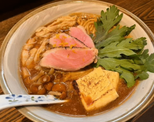 店主の越川氏はフランス料理の世界で16年もの経験を積んだ異色の経歴の持ち主。その技術を活かし、化学調味料を一切使わない洗練された一杯を作り上げています。定番は「濃口醤油」「塩」「山椒 白醤油」の3種類。醤油にシェリー酒で香りを付けるなど、見えない手間ひまが随所に光ります。煮干しや鰹節、宗田鰹など厳選した素材から引き出すスープは、旨みが豊かでありながらキレのある後味が特徴です。レアに仕上げた豚チャーシューと柔らかな鶏チャーシューも人気の秘密。季節限定メニューとして赤味噌と鴨を使った一杯なども登場し、リピーターを飽きさせません。
