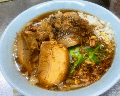 赤羽駅西口から徒歩約2分、たぬきの置物が目印の「手打らーめん満月」は、1974年創業の老舗ラーメン店です。赤羽エリアで50年以上にわたって地元の人々に愛され続けてきた名店として知られています。最大の特徴は、保存料や卵を一切使わず店主が毎日丹精込めて打つ自家製麺。厳選した小麦粉で作られる麺は独特のコシと食感があり、一度食べたらやみつきになるおいしさです。
