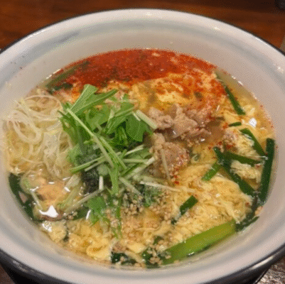 提供されているラーメンは、店名の通り豚骨をベースにした一杯で、「特製大分濃厚豚骨ラーメン」は一骨家の看板メニューです。自家製麺と濃厚な豚骨スープを組み合わせた構成で、しっかりとしたコクを楽しめる内容になっています。また、「大分唐辛子麺」や「ピリ辛冷麺」など、辛さを活かしたメニューも用意されており、好みに応じて選べる点も魅力です。