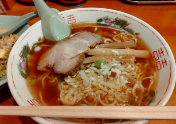 看板メニューのラーメンは、澄んだしょうゆスープに煮干しの香りがふわっと広がるあっさり系。そこに自家製の手もみ縮れ麺が絡み、シンプルながら一度食べると忘れられない味わいです。ラーメンと並んで人気なのが、ぷりぷりのエビがごろっと乗ったエビチャーハンで、セットで頼むリピーターも多数。一人でもふらっと入りやすい雰囲気なので、観光の途中に「昔ながらの弘前の一杯」を体験したいときにぜひ立ち寄ってみてください。