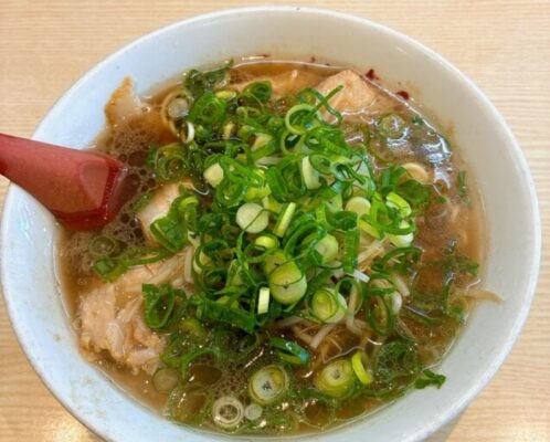 看板メニューは豚骨のコクと醤油のキレを合わせた京都駅エリアでも注目の豚骨醤油ラーメンで、ネギともやしがたっぷり盛られた全部のせは食べ応え抜群です。チャーシュー増しや唐揚げ、ご飯を組み合わせたセットも人気で、しっかりお腹を満たしたいときにおすすめ。行列ができることも多い人気店です。観光やお仕事帰りに京都駅近くでラーメン気分になったら、覚えておきたい一軒です。