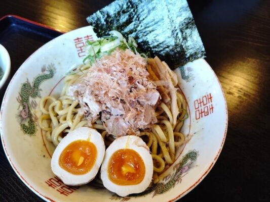 看板メニューの「元祖醤油」は、煮干しの苦味や旨みを感じられるスープと、ツルッとしたコシのある麺の組み合わせが特徴。背脂を加えたガッツリ系の醤油ラーメンもあり、好みに合わせて選べるのも魅力です。煮干し系が好きな人には、ぜひ一度味わってほしいラーメン店です。