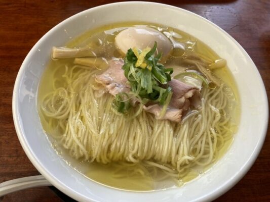 看板となるのは、だしの旨みを丁寧に引き出した塩系ラーメン。中でも「だし味玉塩あっさりラーメン」は、澄んだスープに奥行きのある味わいが重なり、ひと口目から印象に残る仕上がりです。細麺はスープとのなじみが良く、すすり心地も軽やか。派手さはありませんが、素材の良さとバランス感で最後まで飽きずに楽しめます。