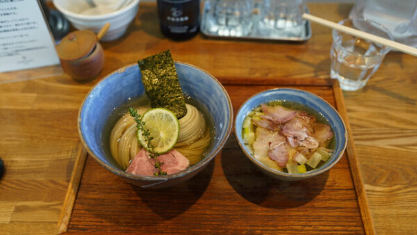 看板メニューのひとつが、味玉昆布水醤油つけそば。昆布の旨みをまとった麺は、そのまま食べても美味しく、つけ汁につけることで味の変化を楽しめる構成になっています。醤油のキレと出汁の奥行きが心地よく、最後まで集中して食べ進めたくなる仕上がりです。麺・スープ・具材のバランスが非常に良く、完成度の高さを感じさせます。