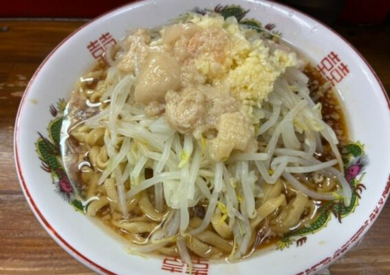 提供するのはラーメン一本で、濃厚な豚骨醤油スープに極太の平打ち麺がよく絡み、もやしとキャベツ、分厚いチャーシューがどっさり盛られた迫力の一杯です。やややわらかめに茹でられた麺はスープとの相性が良く、思わず箸が止まらない中毒性があります。ニンニクや野菜、アブラ、カラメの無料トッピングで好みにカスタマイズできるのも魅力で、品川でガッツリ系ラーメンを楽しみたい人にまさにぴったりのお店です。
