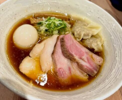 ミシュランのビブグルマンにも選ばれた実力派で、淡麗ながら香り高い塩ラーメンや、醤油のキレを生かした一杯が人気です。全粒粉入りの細麺はパツっとした食感で、鶏と豚の低温調理チャーシュー、ワンタン、味玉などの具材がバランスよく調和します。濃厚な煮干し油そばも評判で、日本酒とのペアリングを楽しむ常連も多く、品川でちょっと特別なラーメン時間を過ごしたいときに覚えておきたいお店です。