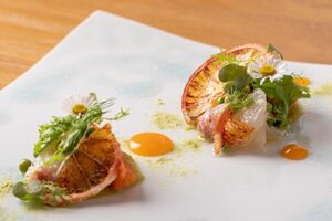 看板格の「つけ麺姫路」は、醤油・トマト・味噌と味のバリエーションがあり、姫路城をイメージした盛り付けが印象的なつけ麺です。「姫路拉麺」は播州醤油のほんのり甘みのあるスープに自家製麺とローストポークを合わせた一杯で、見た目も味わいも楽しめる人気メニューになっています。さらに、澄んだスープの塩ラーメンやトマトのつけ麺、とろろやホルモンを合わせた一杯など、姫路で多彩なラーメンを食べ比べたい人にうれしいラインナップがそろっています。食後には数量限定でわらび餅アイスのサービスがある日もあり、最後まで満足感たっぷりに味わえるお店です。