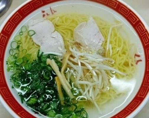 看板メニューのラーメンは、澄んだ塩ベースのスープに、やわらかめの細麺を合わせた一杯で、あっさりとしつつもしっかり旨みを感じられる味わいです。チャーシューやもやし、メンマ、青ねぎがのったシンプルな構成で、白胡椒をふると風味がぐっと立ち、最後のひと口までするすると食べ進められます。ワンタン麺や、ラーメンと一緒に楽しみたい餃子も人気で、姫路で昔ながらのラーメンを味わいたい人にぴったりのお店です。