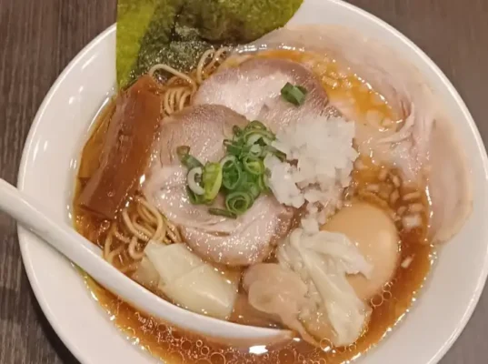 まず選びたいのは香りの立つ醤油の一杯。煮干しの旨みを効かせたメニューや、ワンタン入りも並びます。鶏や魚介のだし感が重なるスープは口当たりがすっとクリアで、麺はつるりとしたすすり心地。チャーシューの香ばしさも相まって、食後の重たさが残りにくいタイプです。スープを飲み進めるほど香りがふくらみ、最後の一口までまとまりの良さが続きます。トッピングでボリュームを足したり、麺の食感を主役にしたりと、その日の気分で選びやすいです。