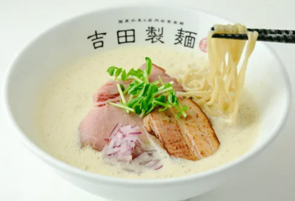 豊鉄市内線・駅前大通電停から歩いてすぐ、豊橋駅東口からも徒歩5分ほどの市電通り沿いにある「吉田製麺」。複合施設emCAMPUSのすぐ隣で、豊橋の中心エリアでラーメンを食べたいときに立ち寄りやすい一軒です。ガラス張りの明るい店構えが目印で、ひとりのサクッと利用から買い物帰りの食事まで幅広く使えます。