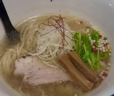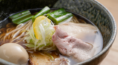 メニューはシンプルながら、愛媛産の真鯛や地鶏など地元食材にこだわったラーメンがそろい、澄んだ鯛だしの塩ラーメンは上品でまろやかな味わいが魅力です。夜はラーメンと一緒に日本酒やワインも楽しめるスタイルで、鶏皮ぎょうざなどの一品と合わせれば、バー感覚で過ごすこともできます。松山のラーメンをしっかり味わいつつ、ゆっくりお酒も楽しみたい人にぴったりのお店です。